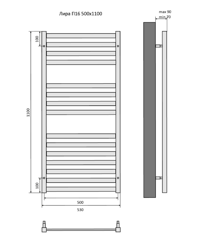 Водяной полотенцесушитель Акватек Лира П16 50х110 см хром AQ KP1610CH