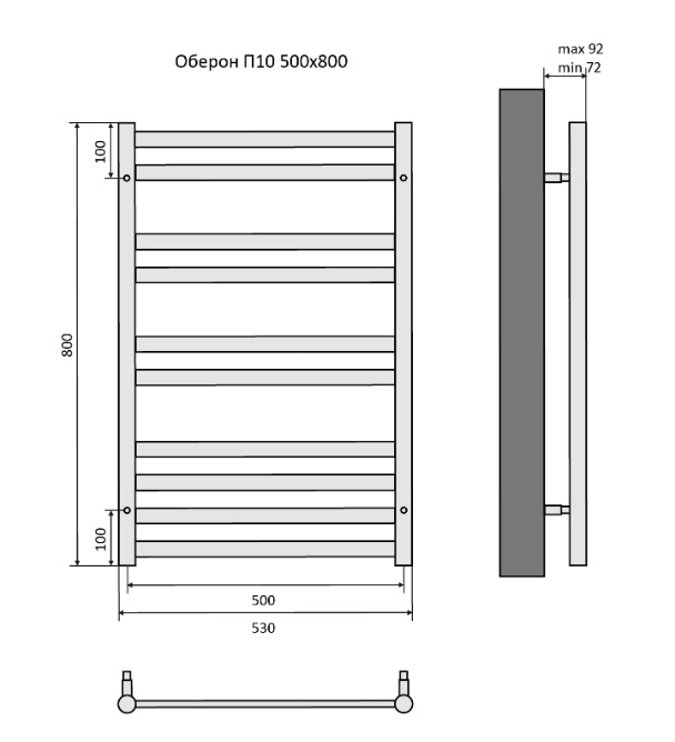 - Водяной полотенцесушитель Акватек Оберон П10 50х80 см хром AQ RO1080CH