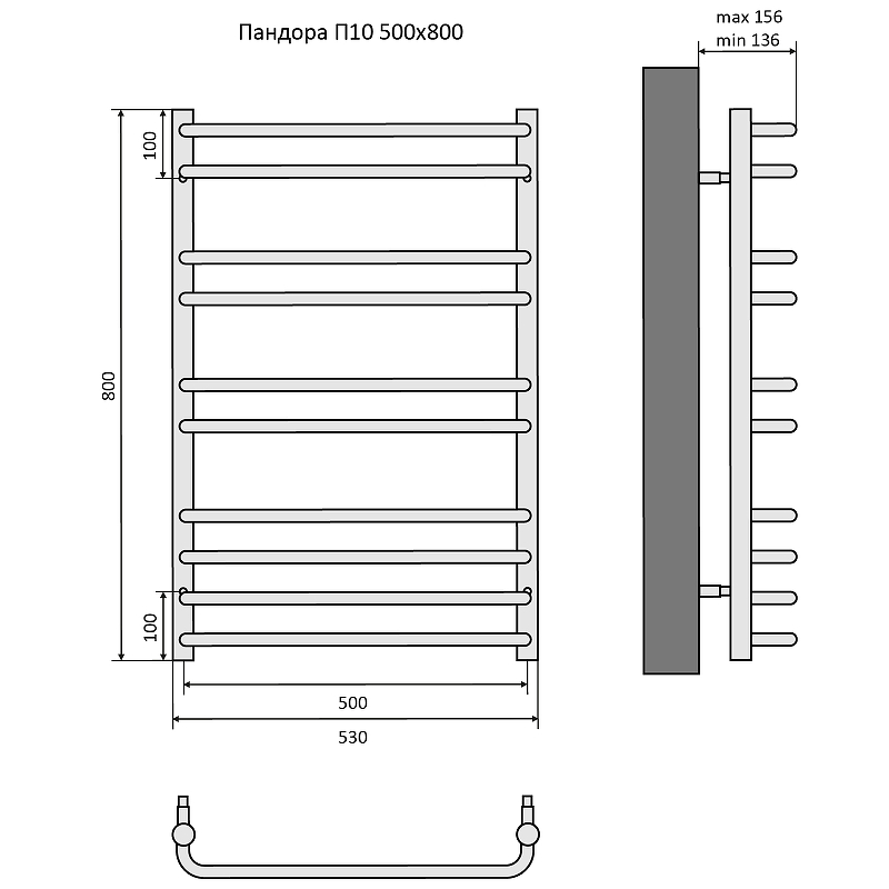 Водяной полотенцесушитель Акватек Пандора П10 50х80 см черный муар AQ RRС1080BL
