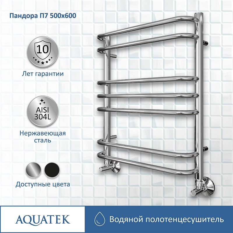 Водяной полотенцесушитель Акватек Пандора П7 50х60 см хром AQ RRС0760CH