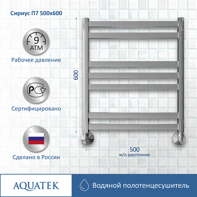 Водяной полотенцесушитель Акватек Сириус П7 50х60 см хром AQ DP0760CH