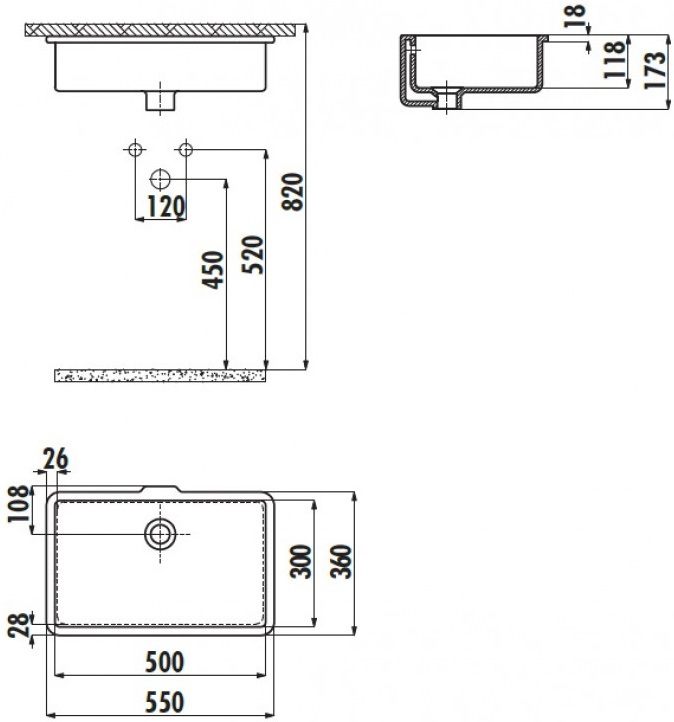 Врезная раковина Creavit 50х30 см TP730-00CB00E-0000