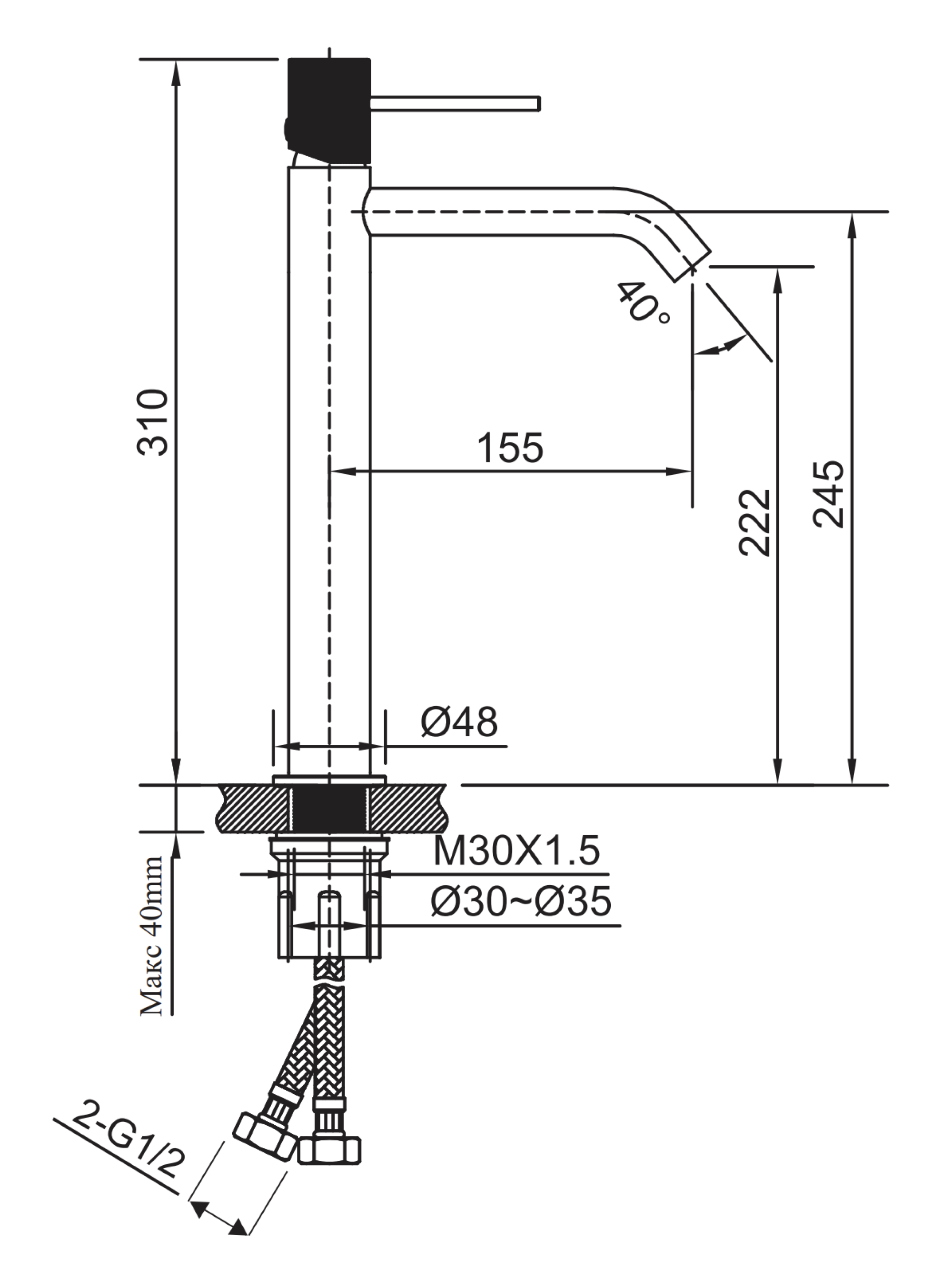 | Высота смесителя, см | 31 |