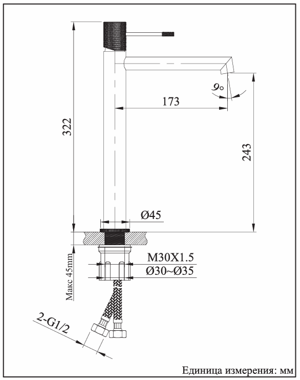 | Высота смесителя, см | 32,2 |