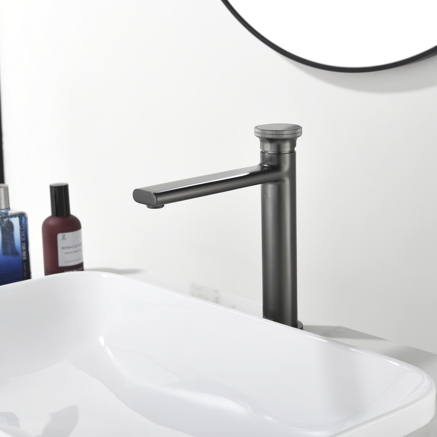 Высокий смеситель для раковины Black & White Gravity оружейная сталь GF7307GM