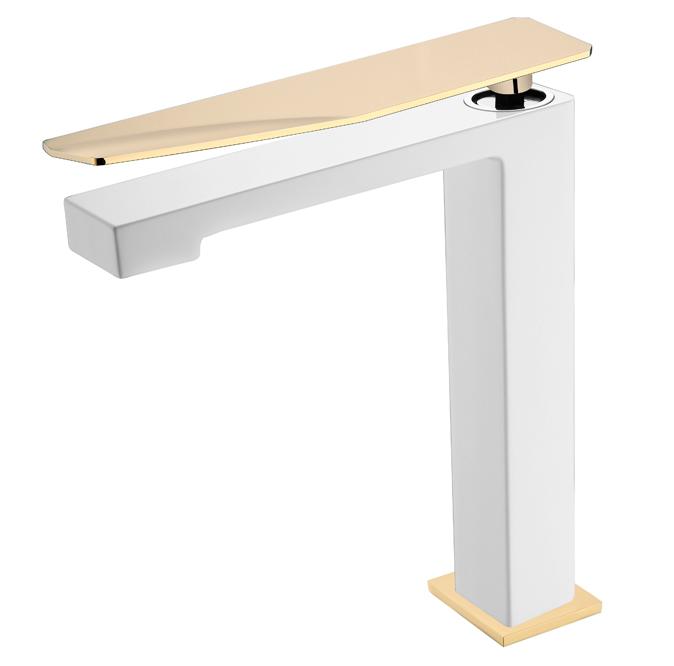 - Высокий смеситель для раковины Boheme Q белый/ золото 142-WG.2