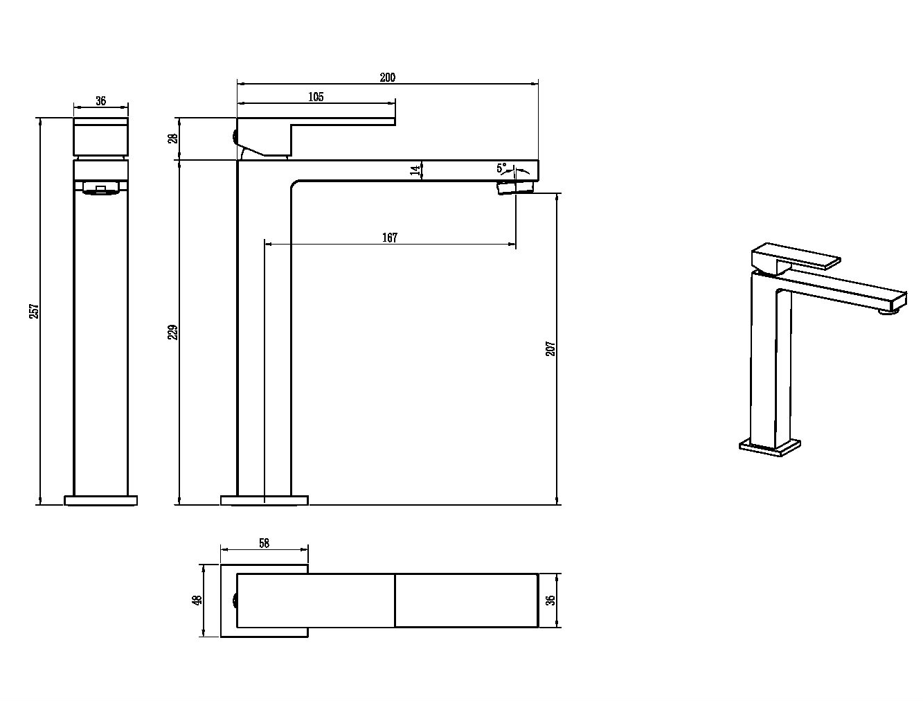 - Высокий смеситель для раковины Boheme Qubic медь браш 472-CB