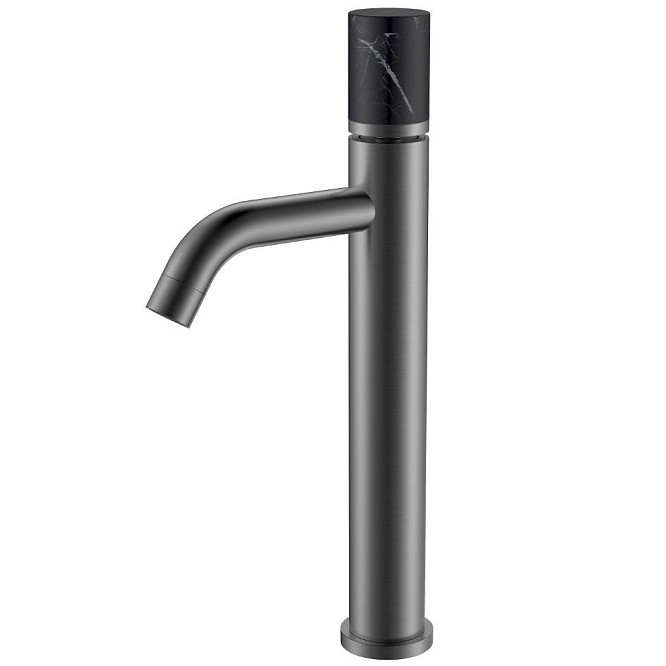 - Высокий смеситель для раковины Boheme Stick ручка Mramor black графит 122-GM-MR-B