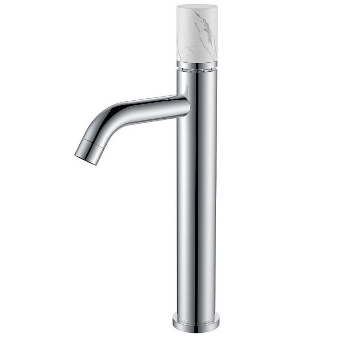 - Высокий смеситель для раковины Boheme Stick ручка Mramor white хром 122-CR-MR-W