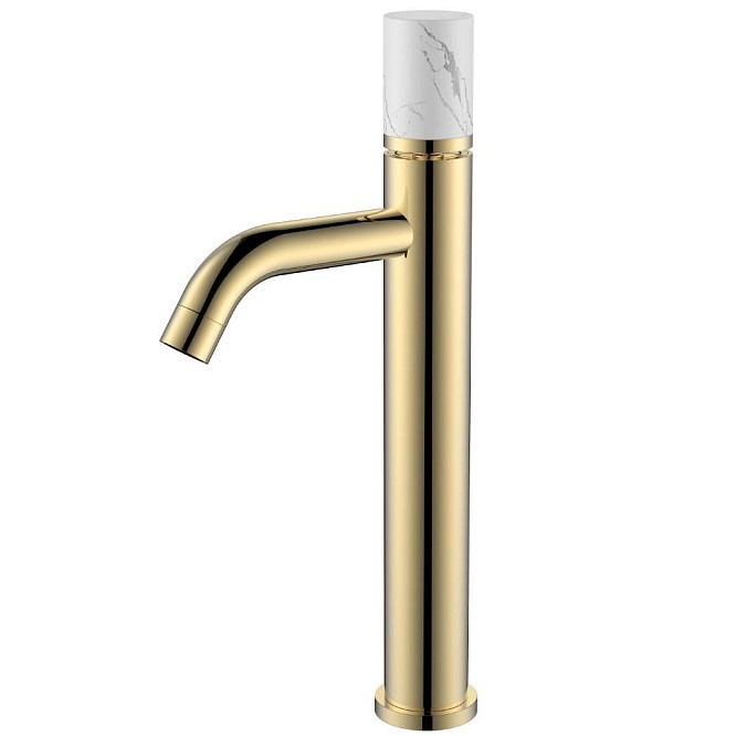 - Высокий смеситель для раковины Boheme Stick ручка Mramor white золото 122-G-MR-WHITE