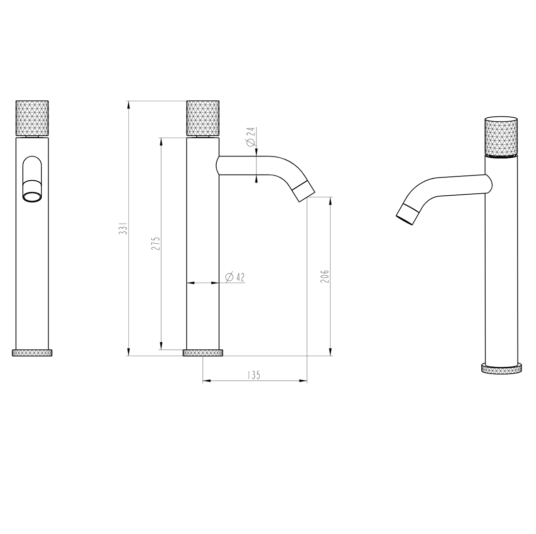 - Высокий смеситель для раковины Boheme Stick ручка Spirale графит 122-GM.4