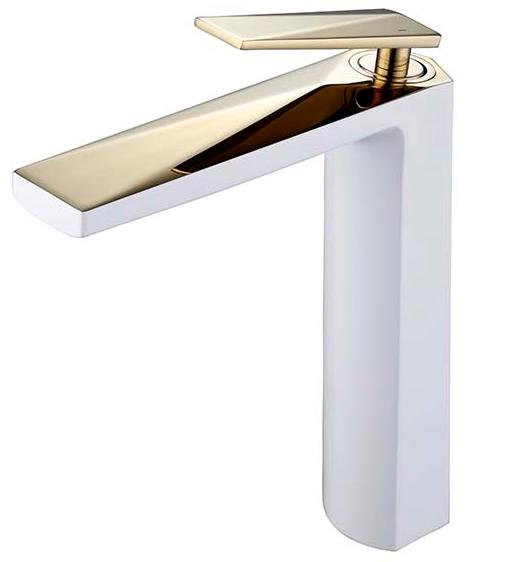 - Высокий смеситель для раковины Boheme Venturo белый/ золото 382-W