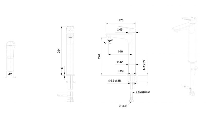 Высокий смеситель для раковины Bravat Rhein F1429564BW-A-ENG