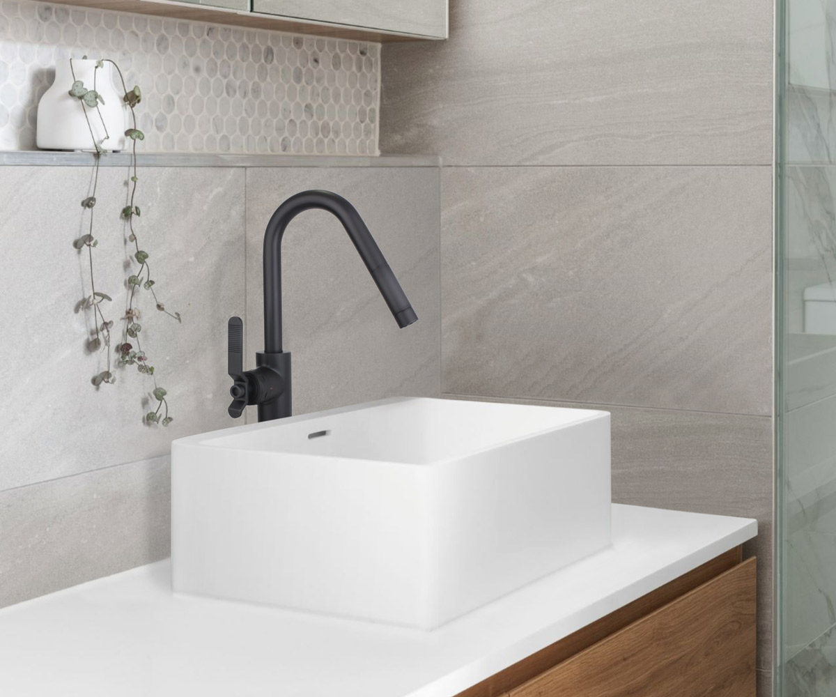 Высокий смеситель для раковины Bronze de Luxe 1760's Лофт черный матовый 3352SB