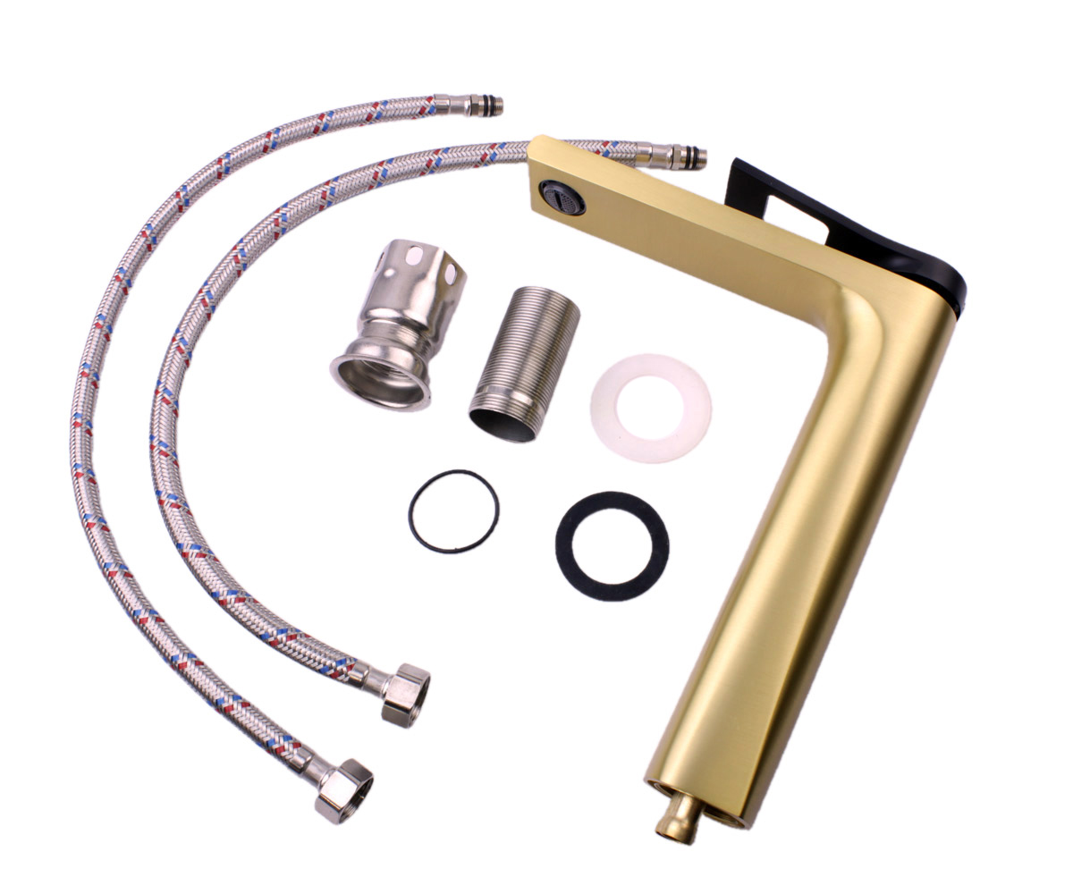 Высокий смеситель для раковины Bronze de Luxe Элемент золото матовое/черный EL21GB