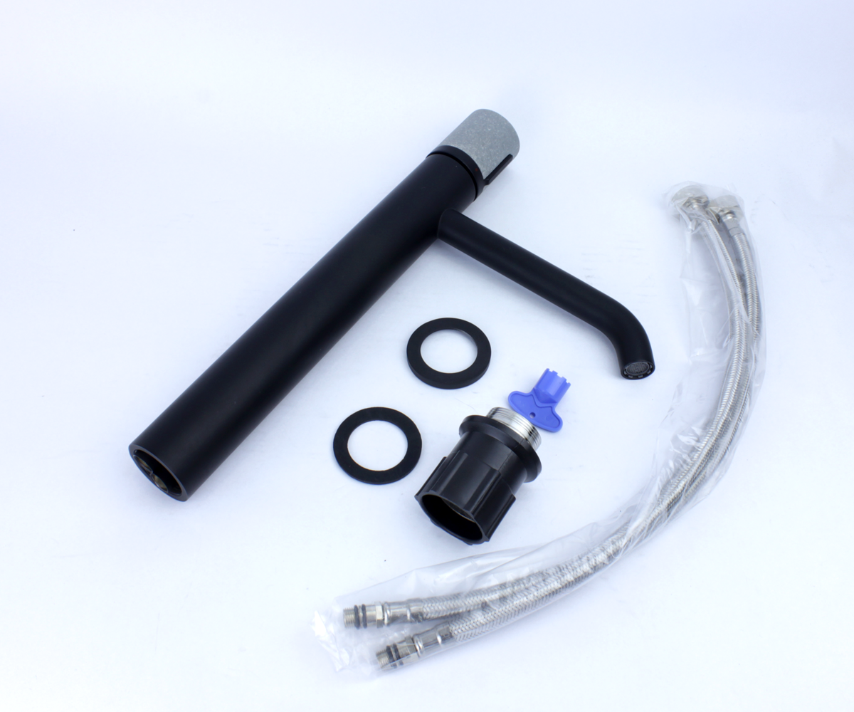 Чёрный матовый смеситель на столешницу легко установить — всё необходимое для монтажа уже в комплекте. В наборе: гибкая подводка 1/2 дюйма -2 штуки (для горячей и холодной воды), уплотнительные прокладки, монтажные латунные соединительные элементы для фиксации смесителя на поверхности. Помимо смесителя в коллекции Focus представлены душевые системы, низкий смеситель, настенный смеситель, донный клапан – всё для создания интерьера ванной комнаты в едином стиле