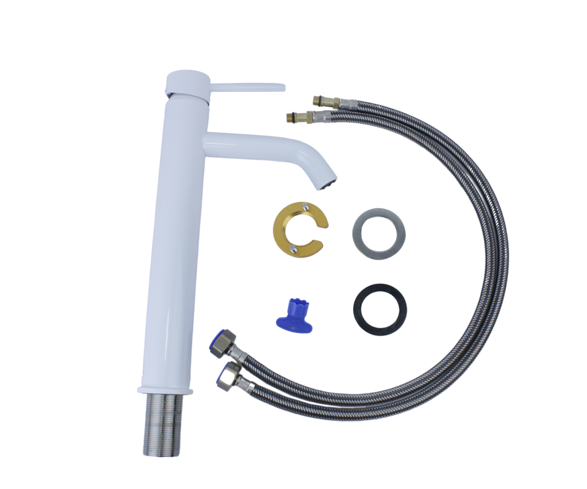 Высокий смеситель для раковины Bronze de Luxe Сканди белый глянец 1452W