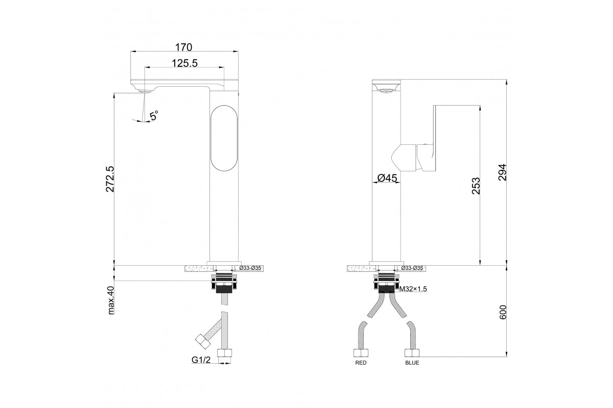 Высокий смеситель для раковины Fashun A8985-35 золото