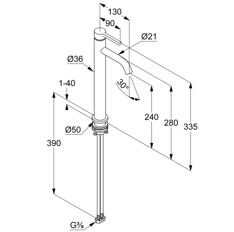 - Гибкая подводка 3/8 39 см