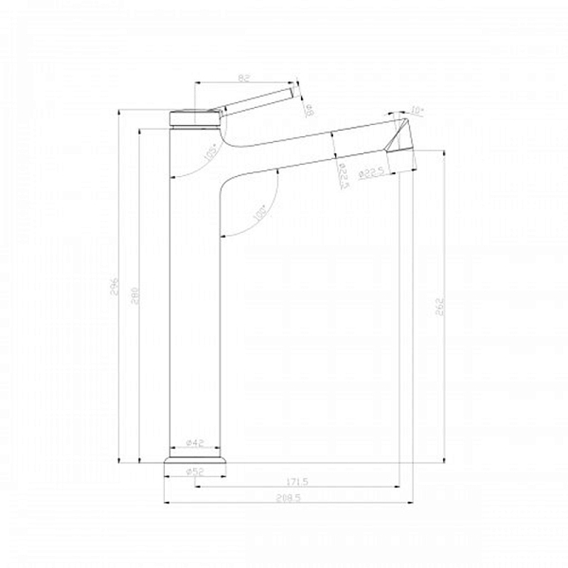 - Высота от поверхности установки до излива 262 мм