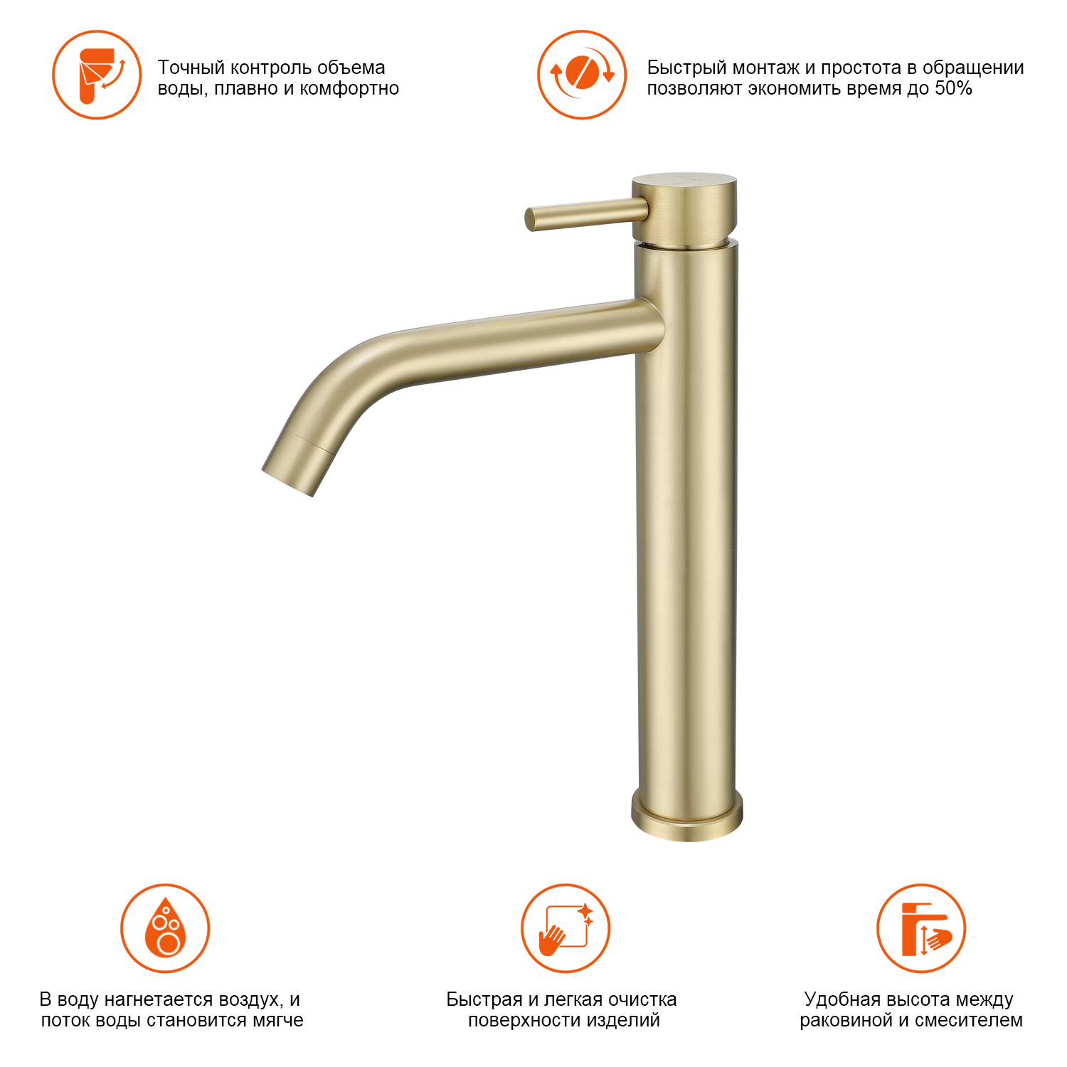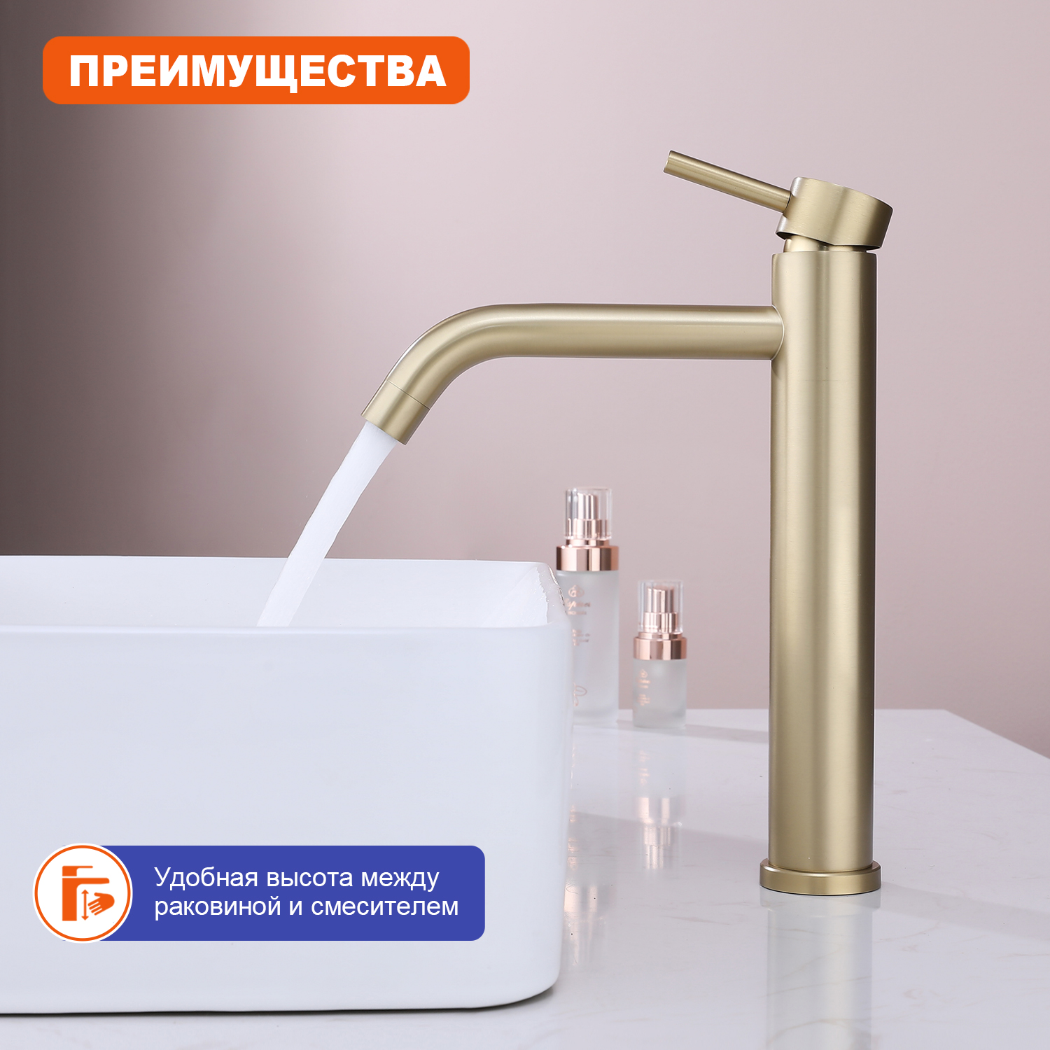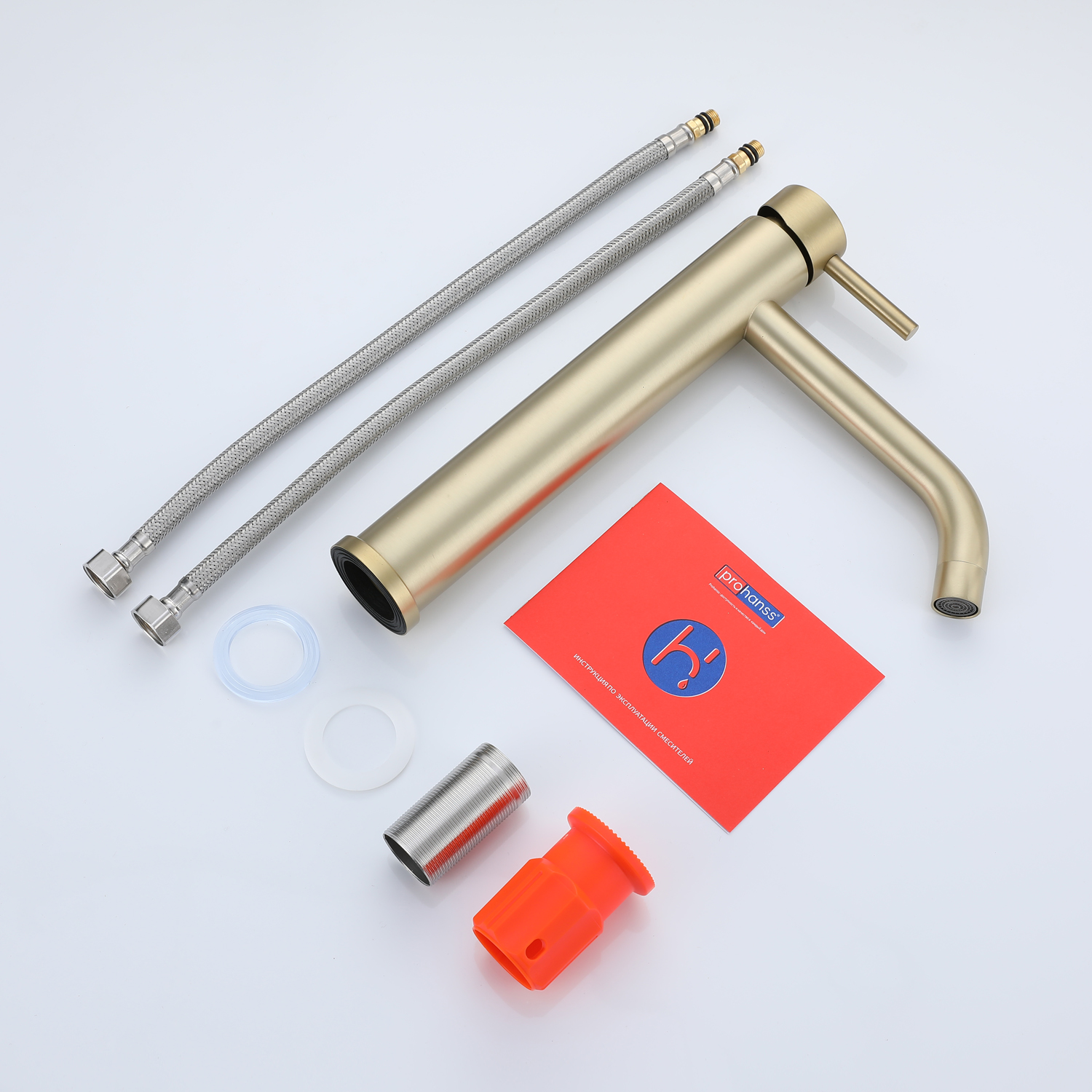 Высокий смеситель для раковины Prohanss P31.15.03 сатин золотой