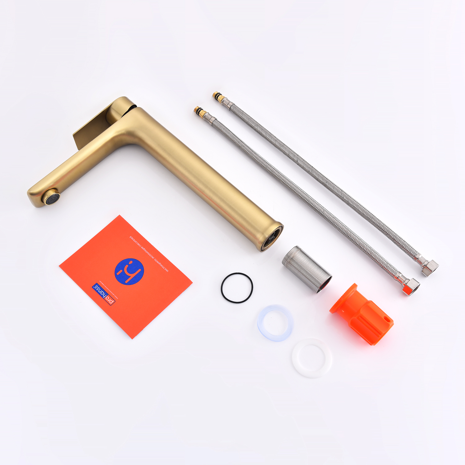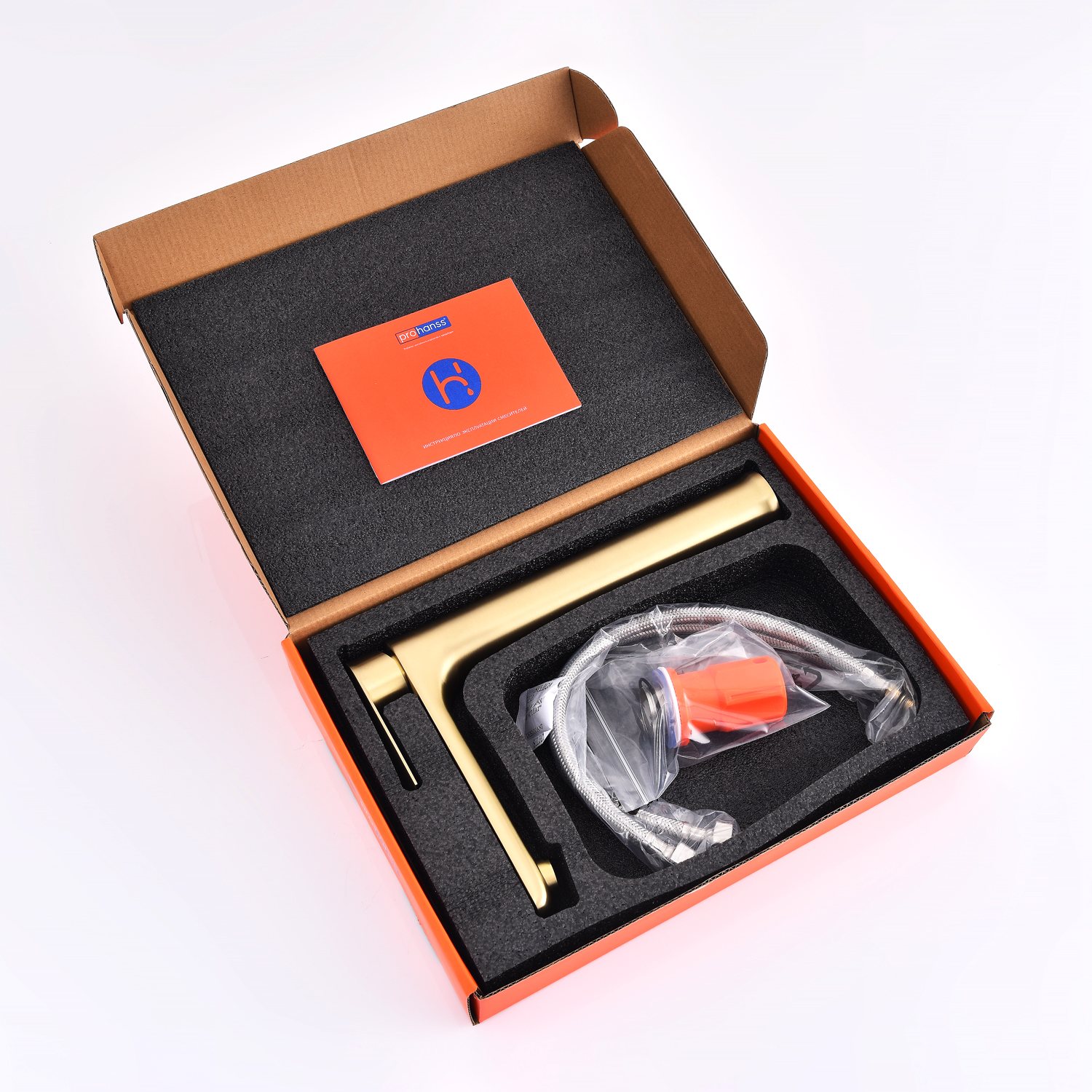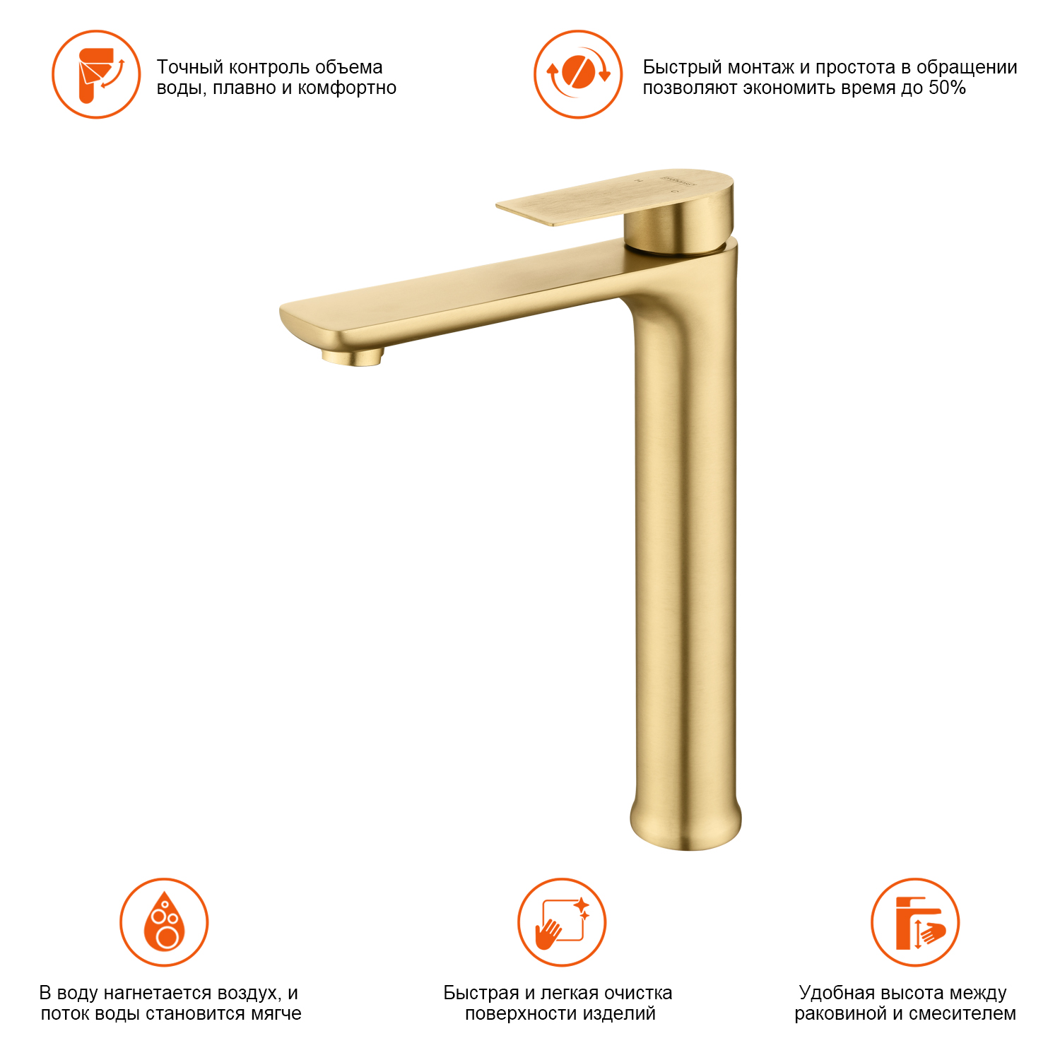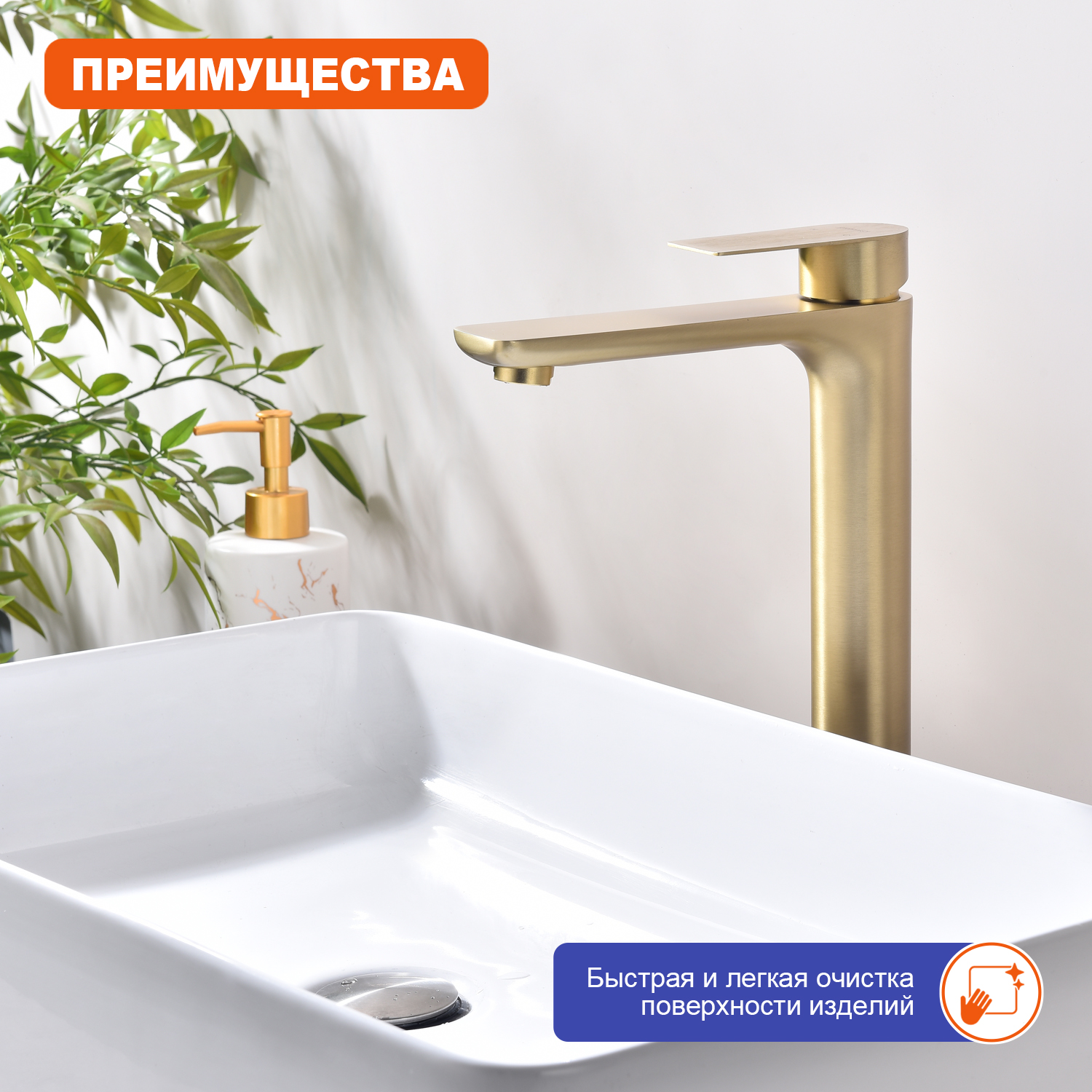 Высокий смеситель для раковины Prohanss P35.15.03 сатин золотой