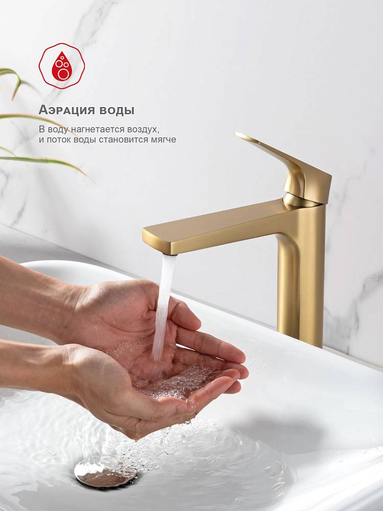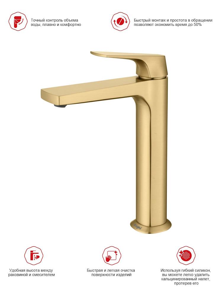 Высокий смеситель для раковины Raglo сатин золото R07.15.03