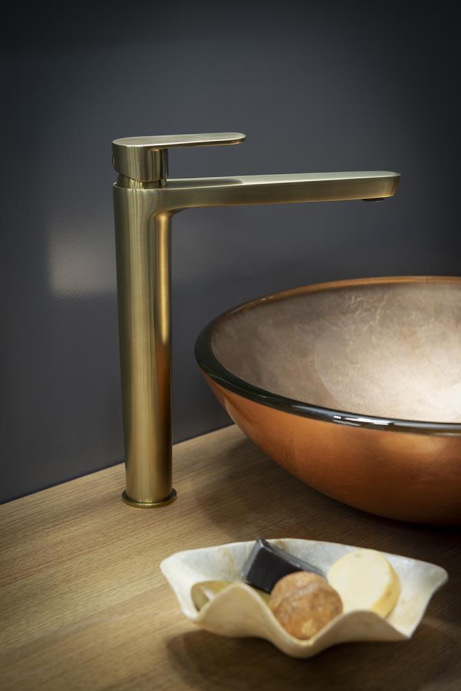 Высокий смеситель для раковины Ramon Soler Alexia 3602OC золото браш