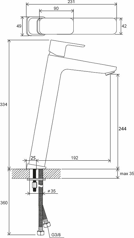 | Высота смесителя, см | 33,4 |
