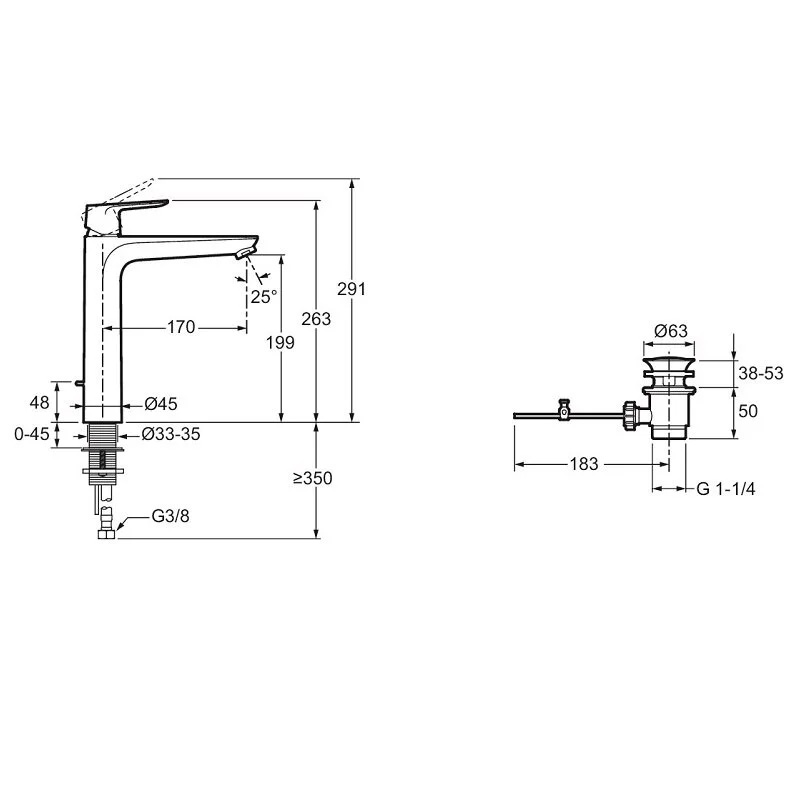 Высокий смеситель для раковины с д/к Jacob Delafon July+ L хром E35666-4-CP