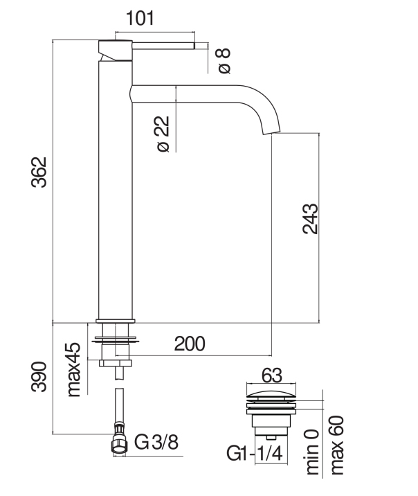 Высокий смеситель для раковины с д/к Nobili LIVE LV00128/2BM