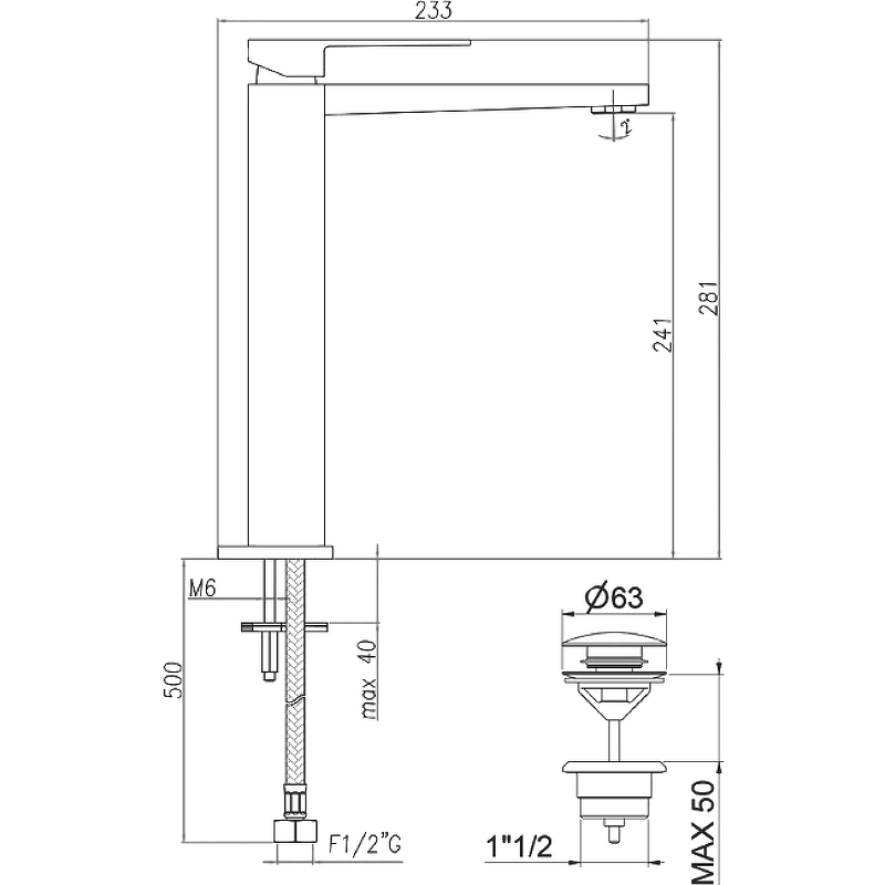 Высокий смеситель для раковины с д/к Webert Pegaso хром PE830402015