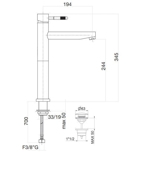 Излив: фиксированный 19,4 см