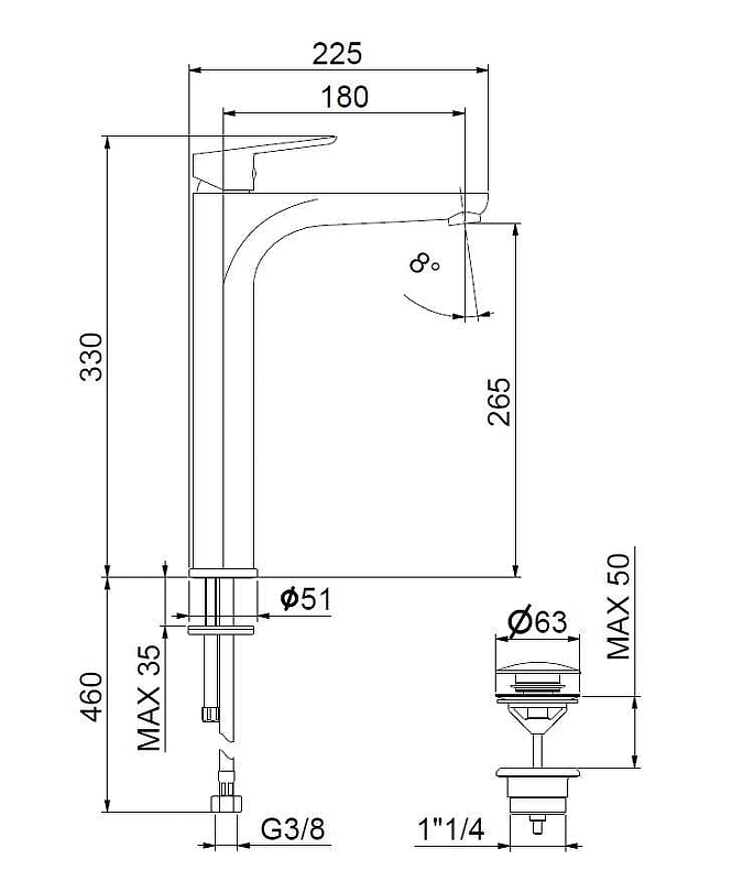 Высокий смеситель для раковины с д/к Webert Sax Evolution черный SE830402560