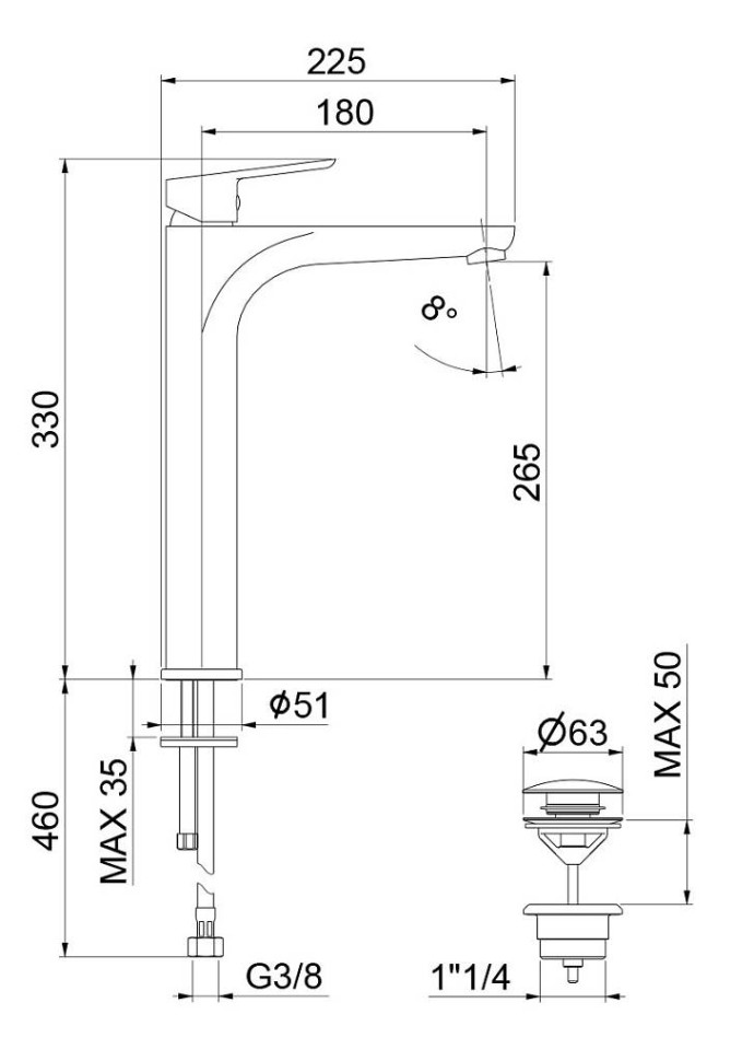 Высокий смеситель для раковины с д/к Webert Sax Evolution хром SE830402015