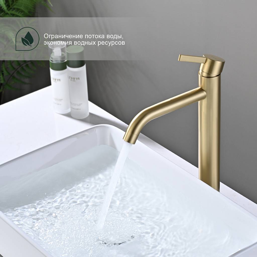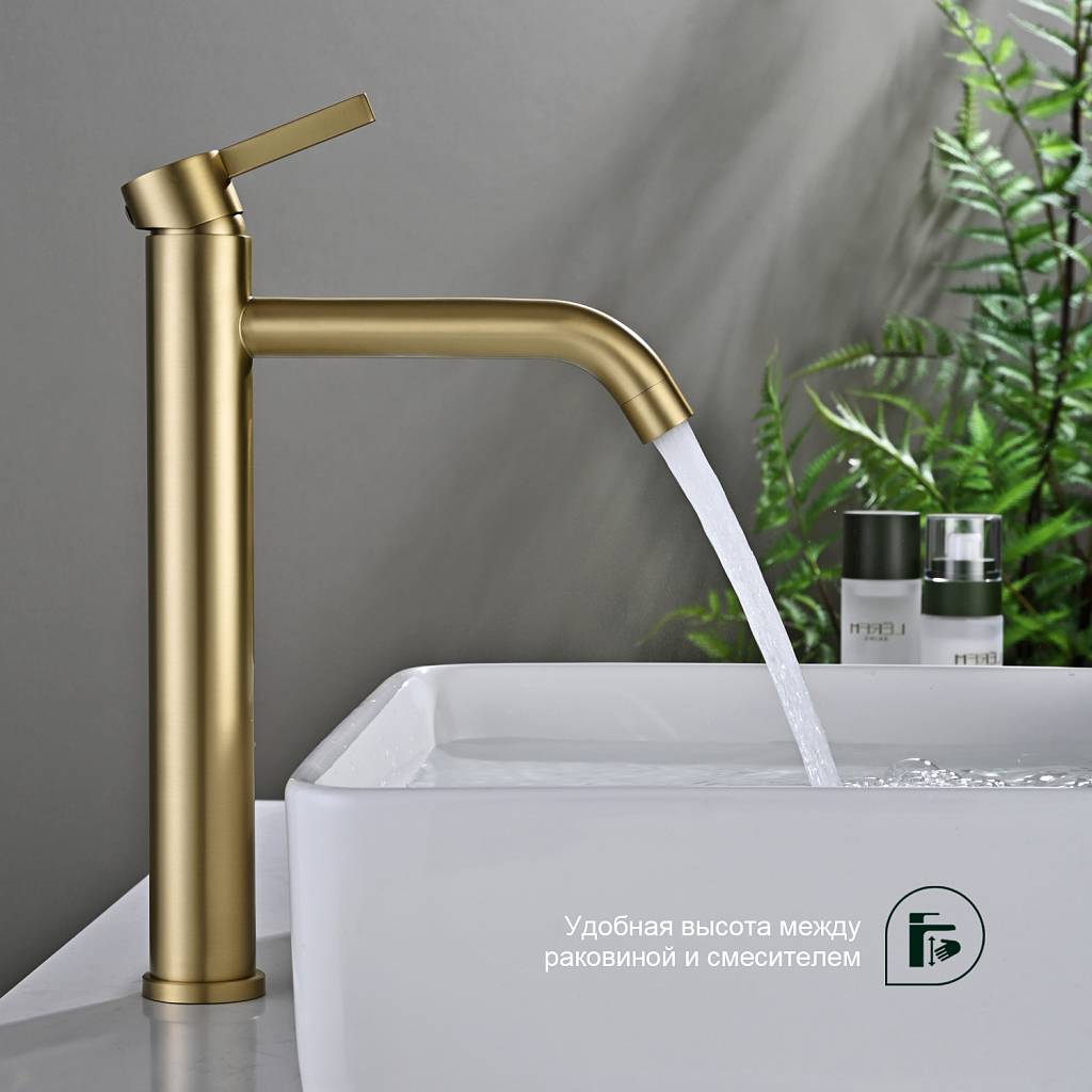 Высокий смеситель для раковины Splenka S221.15.03 сатин золотой
