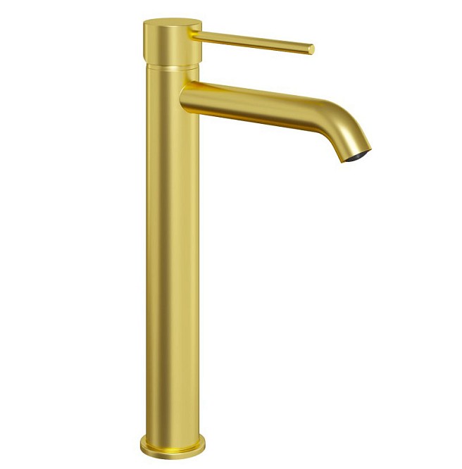 Высокий смеситель для раковины удлиненный излив Paini Cox 78PJ205OLL золото браш
