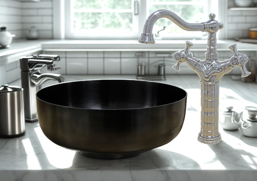 3. Универсальность: Смесители подходят для накладных раковин-чаш, что позволяет использовать их в самых разных интерьерах.