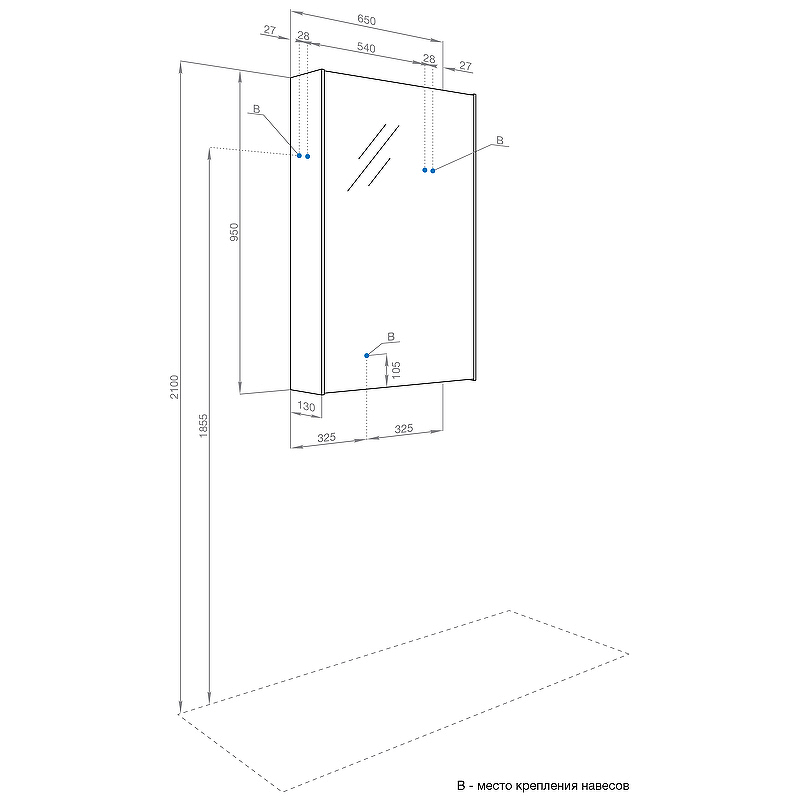| Система хранения | 1 дверца с доводчиком, 3 полки стекло |