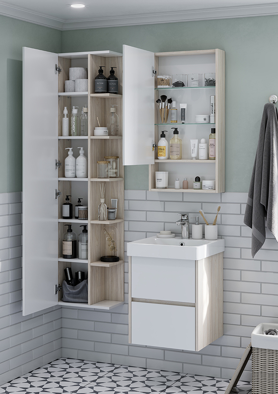 Зеркальный шкаф Aquaton Сканди 45 см белый/ дуб верона 1A252002SDB20