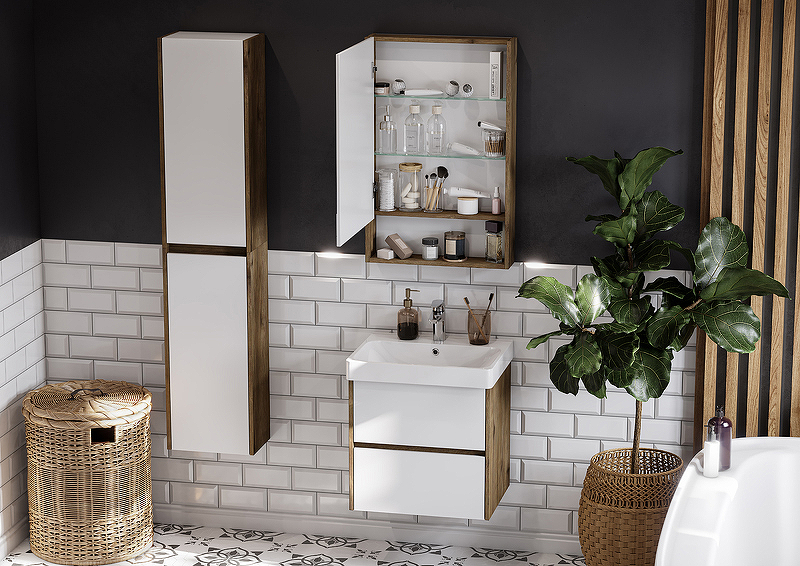 Зеркальный шкаф Aquaton Сканди 55 см белый/ дуб рустикальный 1A252102SDZ90