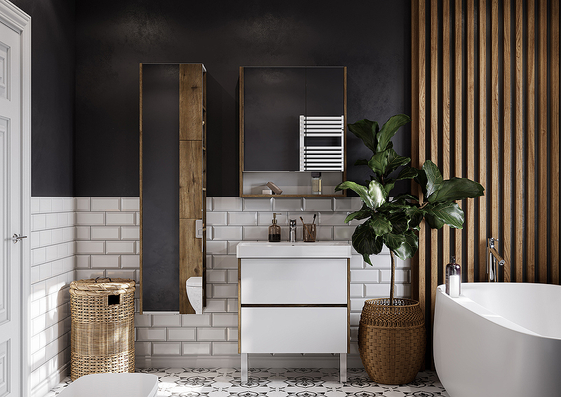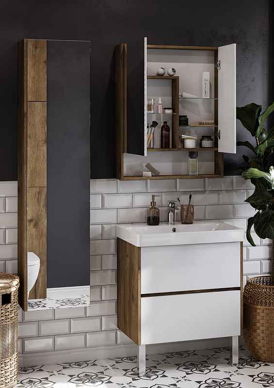 Зеркальный шкаф Aquaton Сканди 70 см белый/ дуб рустикальный 1A252202SDZ90