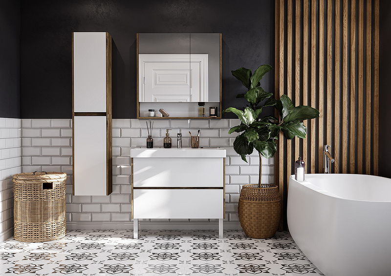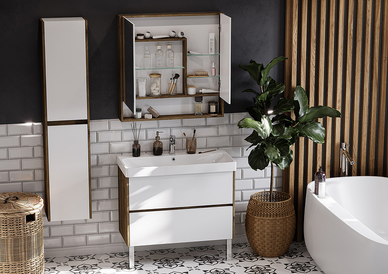 Зеркальный шкаф Aquaton Сканди 90 см белый/ дуб рустикальный 1A252302SDZ90