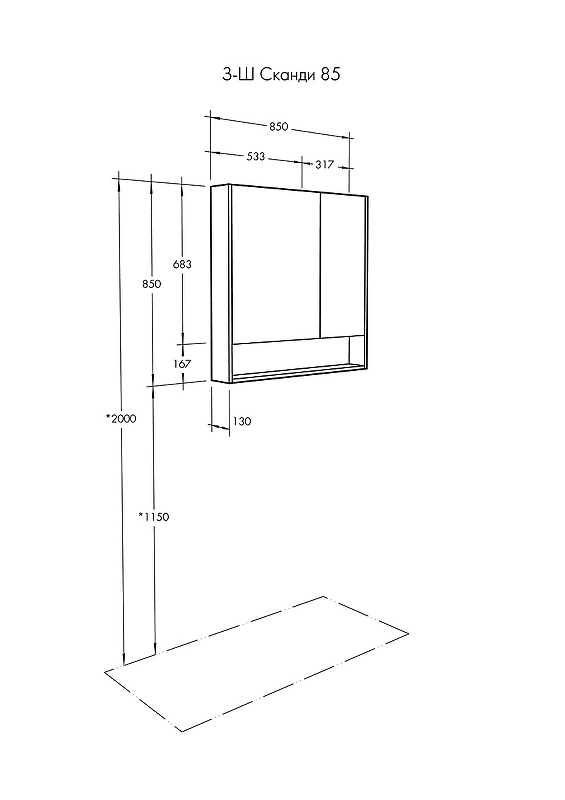 | Система хранения | 2 дверцы с доводчиком, 3 полки стекло |