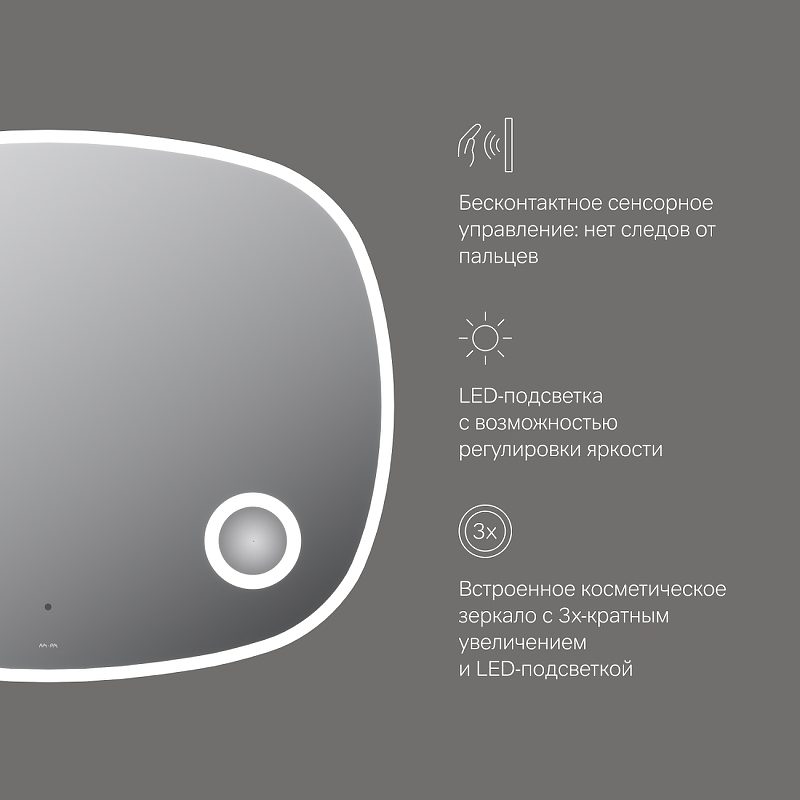 | Особенности | LED-подсветка с регулировкой яркости, сенсор без касания, 3х-кратное увеличение |