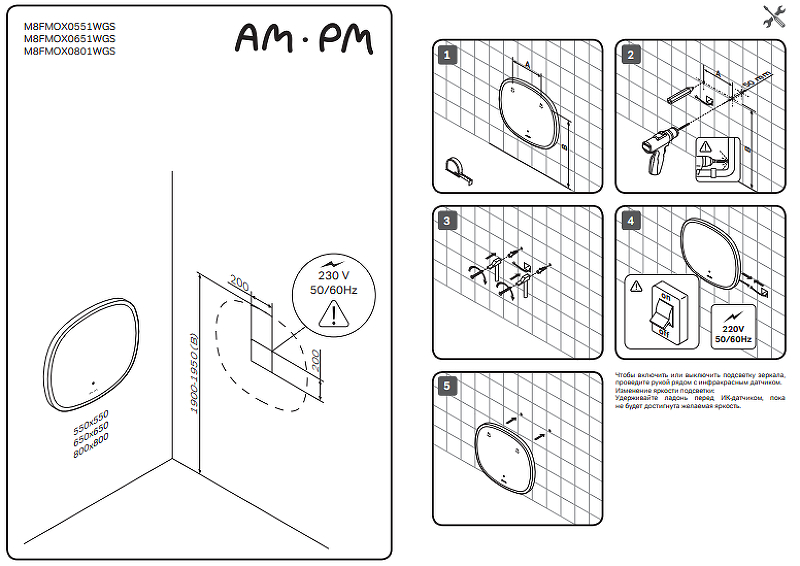 - Зеркало AM.PM Func (65х65) с подсветкой и ИК-сенсором M8FMOX0651WGS