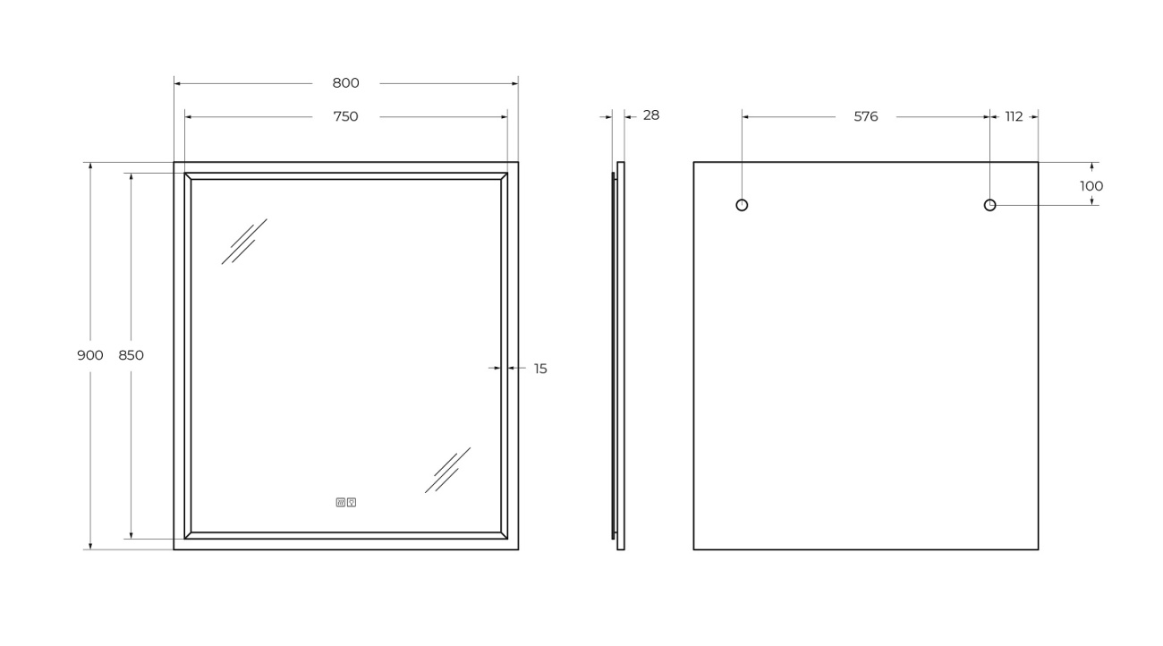 | Особенности | Контурная подсветка холодный белый, сенсорный выключатель и подогрев |