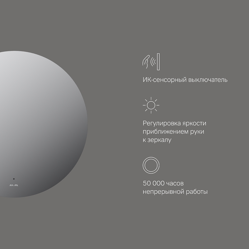 - ИК-сенсор позволяет управлять включением/выключением LED-подсветки без касания зеркального полотна.