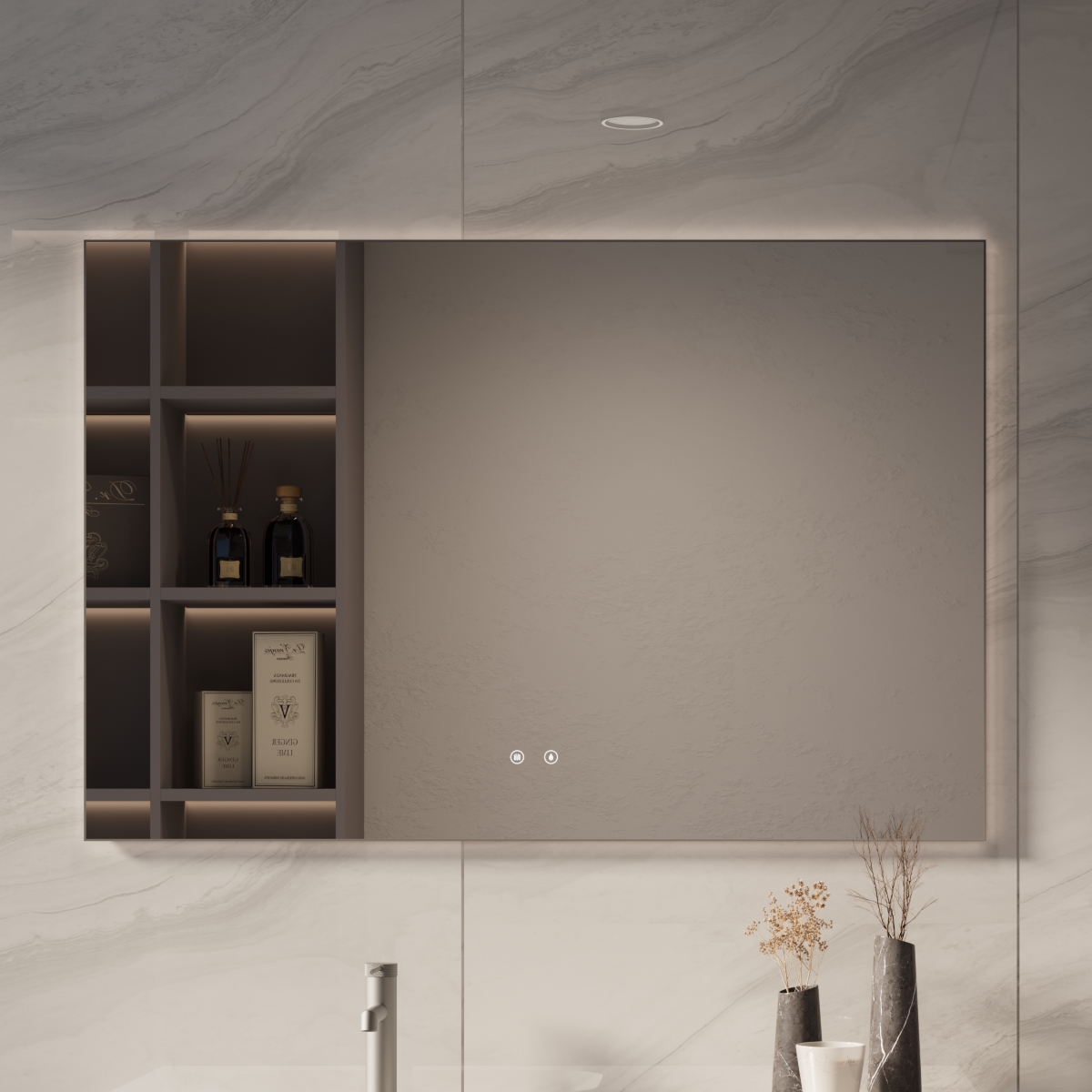 Зеркало LED Vincea 120х80 см сенсорный выключатель и антизапотевание вороненая сталь VLM-4F120GM-2
