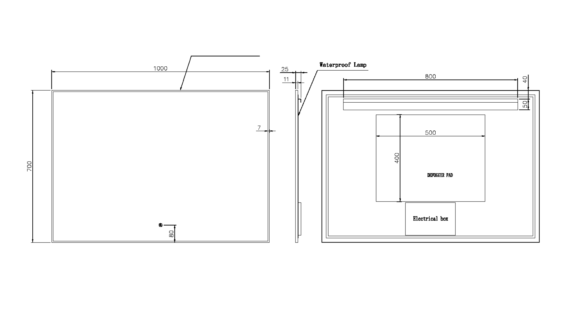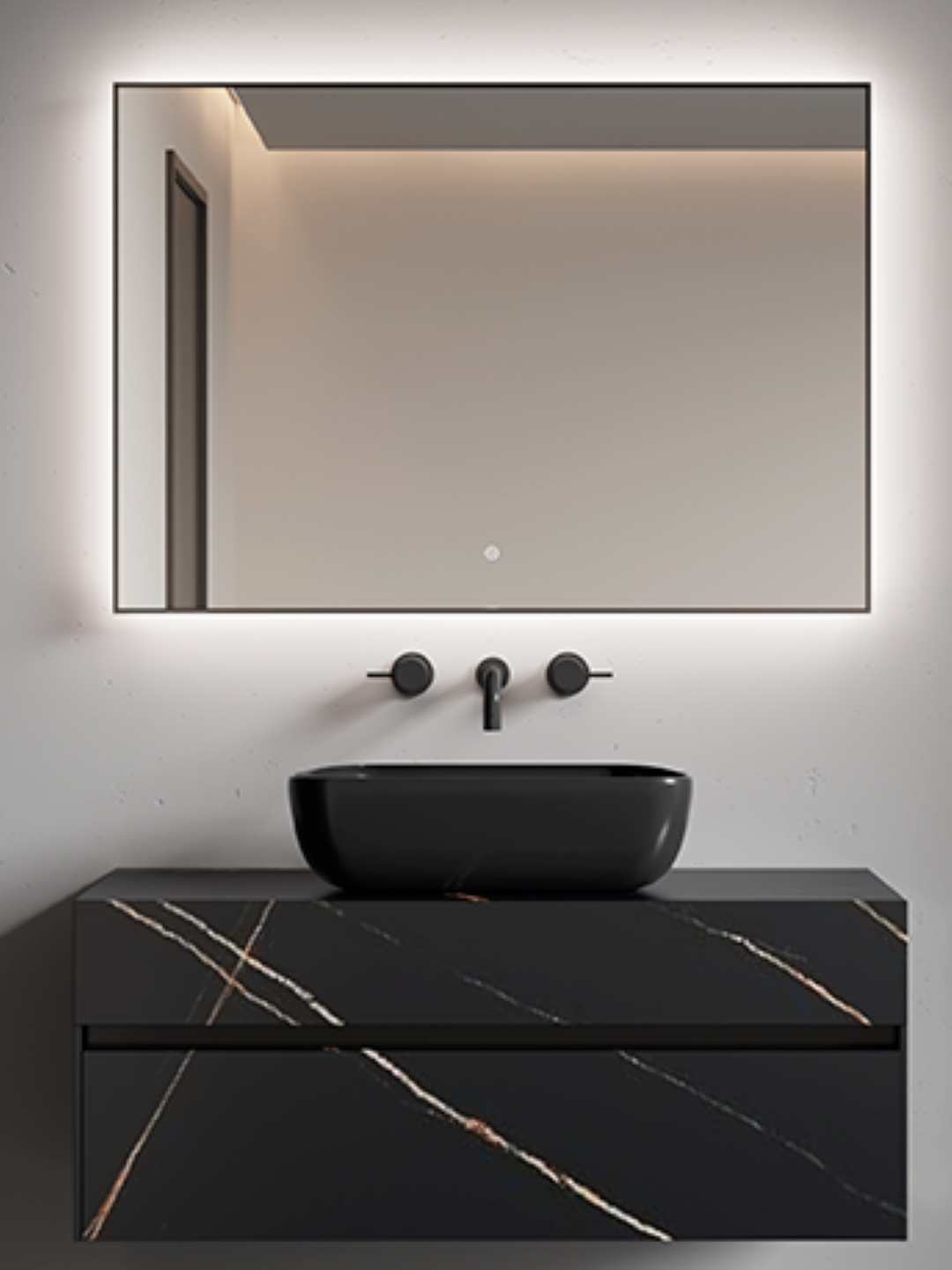 Размерный ряд от 80см до 140см. Каждое зеркало оборудовано тыльной подсветкой. Возможность регулировки температуры с помощью сенсора от теплого 3000K до холодного 6000K